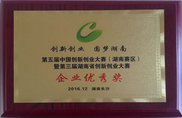 2016年第五届中国创新创业大赛(湖南赛区)企业优秀奖