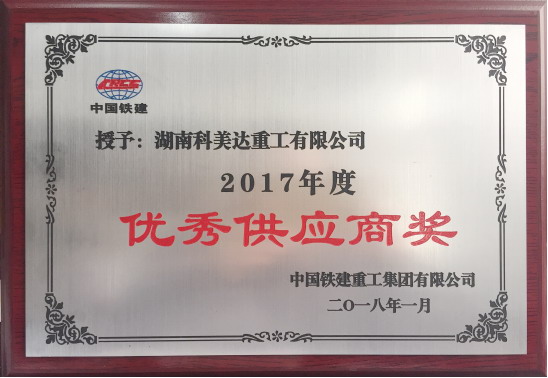 2017年中国铁建重工集团有限公司“优秀供应商”称号